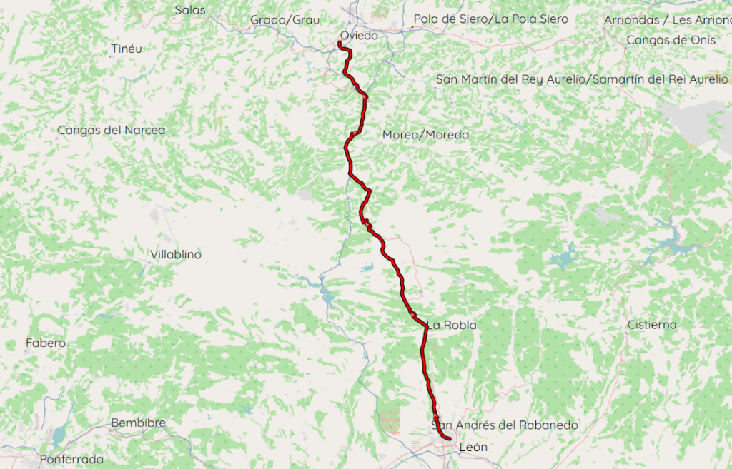 Good for me, I had options. I would not stick to the Frances, only crossing 475km of the total 800km, making my way from Saint-Jean at the edge of France to Leon at the northwestern corner of the Central Meseta. Here, I would change directions, heading north on the Camino de San Salvador for 120km until I reached Oviedo, the capital of the Asturias region.