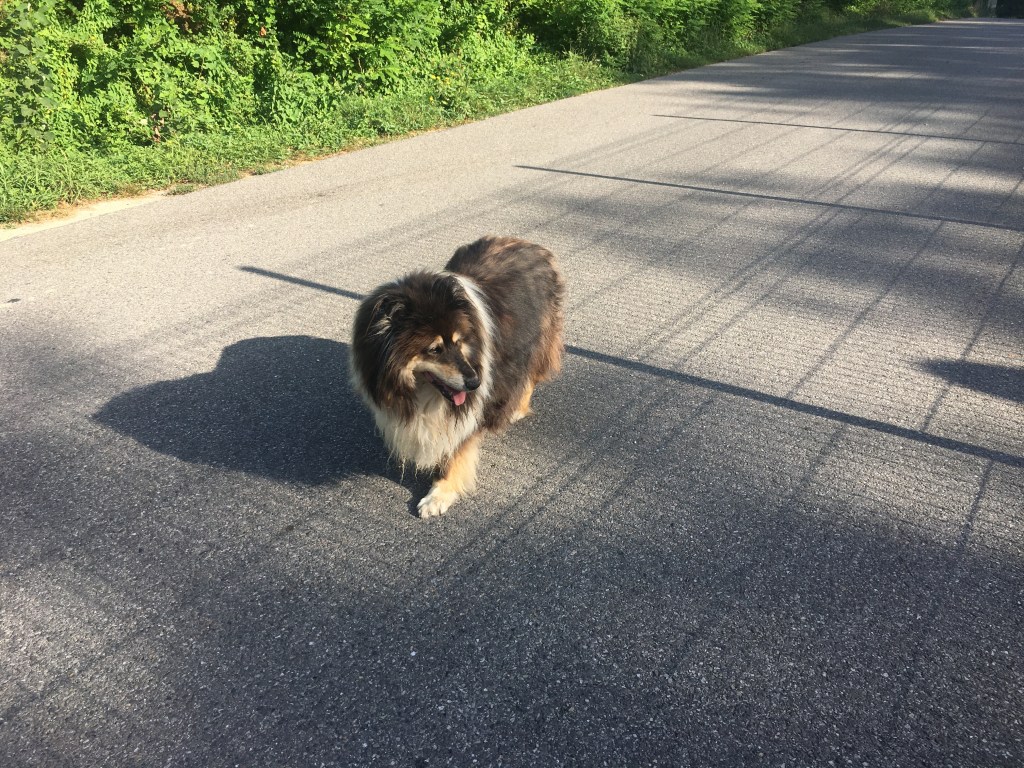 I took the last swig of my water to motivate myself, and kept going. Another thirty minutes trundled by, and I was talking to myself – not a symptom of the dehydration, just for fun – when the bushes beside me shook with force. Oh. What maniac lay in wait, ready to murder pilgrims, what feral beast – cat :]