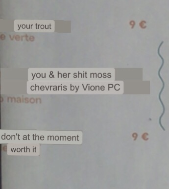 Not that I realised it at first – what caught my eye was a small restaurant, just beginning to open. And I was so dead, and Chanaz was still so far away, and I was like a moth to fairylights because the second they turned on I had made my decision. I took a picture of the menu trying out the Google translate picture to words thing and my god – what an invention. As I backtracked a little to the camping table and toilets I had just passed to change into a nicer (read : dry) shirt, I had to contain myself. The desire to order ‘you & her shit moss’ was mounting.