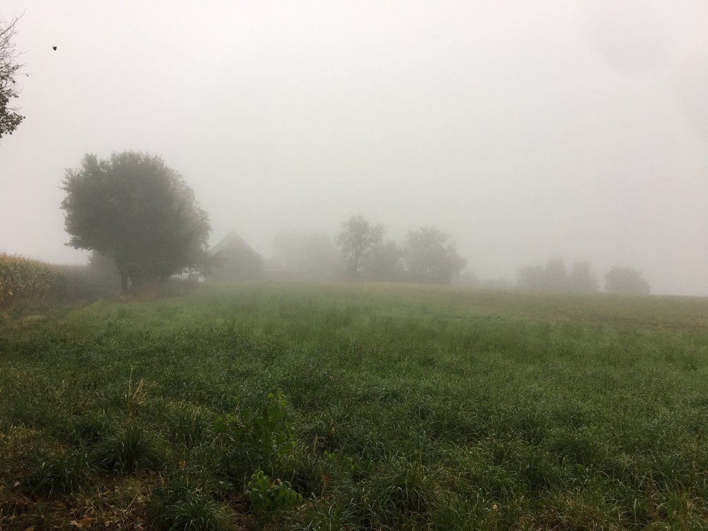 This morning was another fog-filled one, and it was, like yesterday, gorgeous. It felt like something out of a film, some mildly uncanny mundane piece about nothing in particular – I loved it. Banshees of Inisherin without the missing fingers, and with a little more rain.