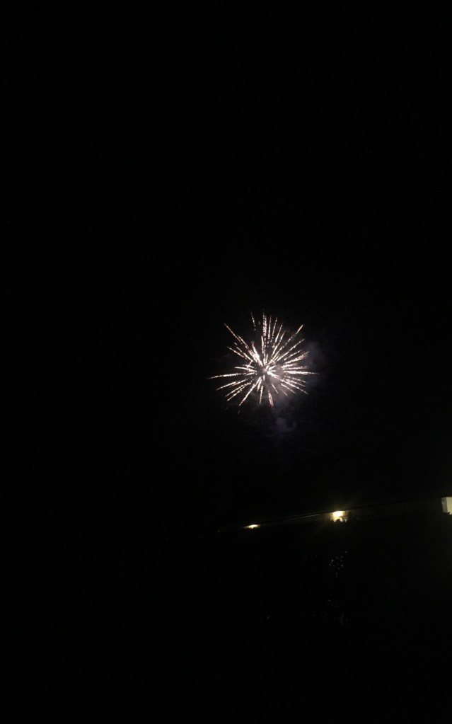 Forty minutes later, I returned to wet laundry. The dryer had done almost nothing. Damn! Air dry it was – fingers crossed it was warm enough in my little caravan for it to work. As I walked back to said little caravan, the bangs began. Fireworks.