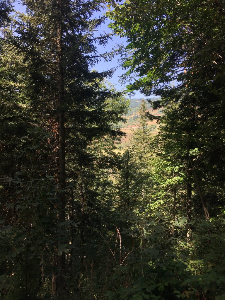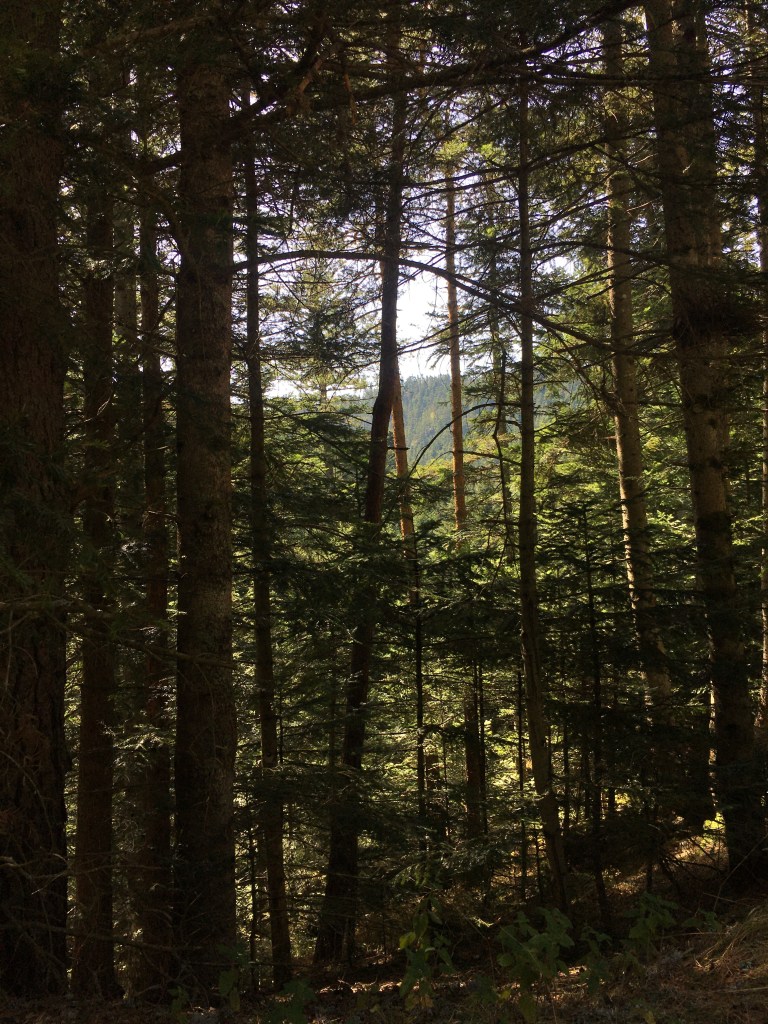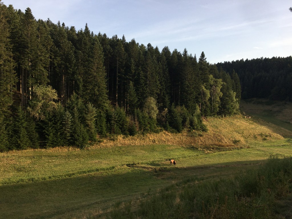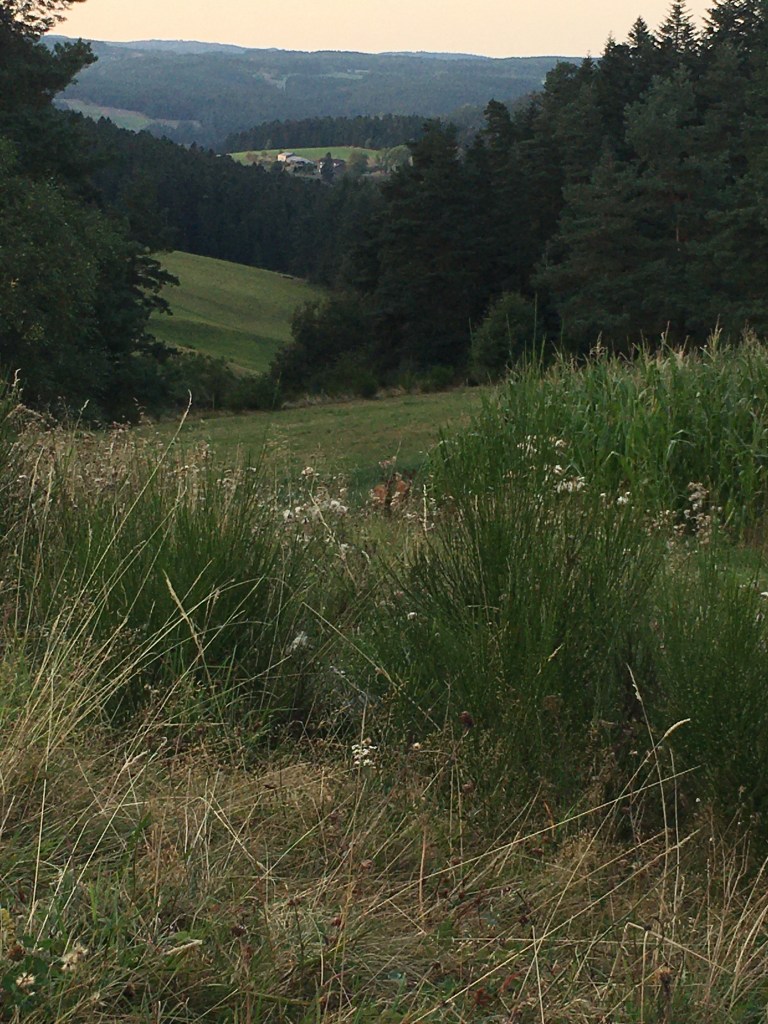 It was around 4.30pm now – four hours to find somewhere to sleep. Sweet :] The first few kilometres were a breeze, steep downhill and surrounded by rolling fields and pine, always pine. It smelt so specific, but I couldn’t figure out why – it didn’t feel familiar, just,, known.