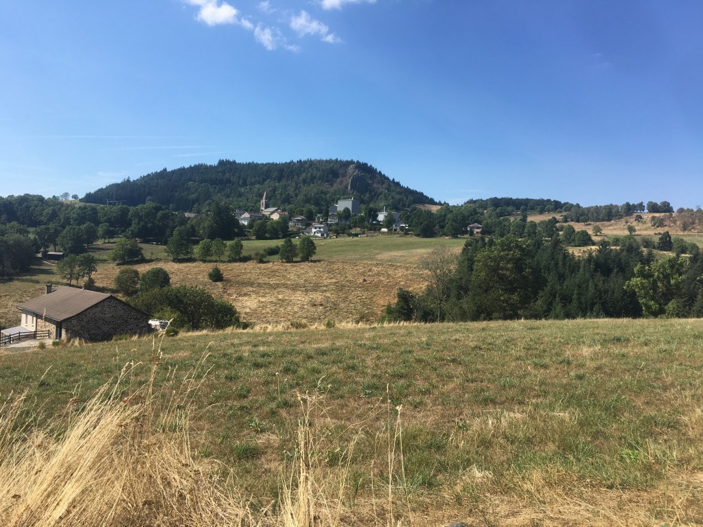 The path out of St-Jeures follows the main road, then turns sharply right then right again (only, it turns right after the shells tell you, so try to avoid walking into that rando French backyard, if you can. It dips (again) in and out of pine forests on rocky paths for a few kilometres before you see the volcanic bluff of Araules in the distance.