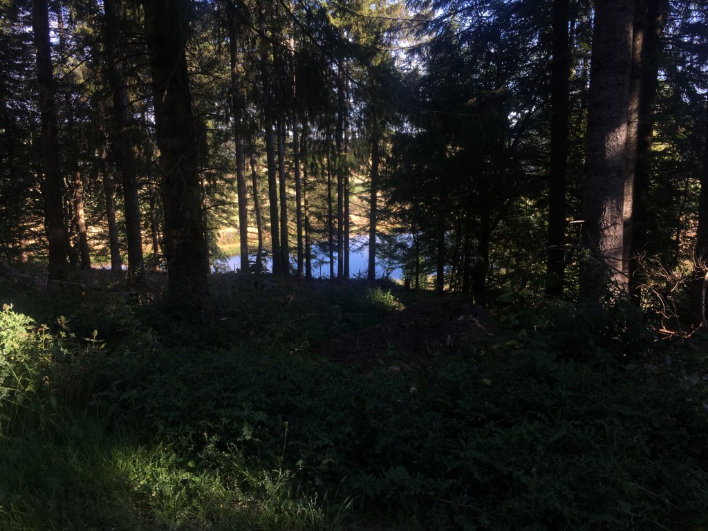 You follow the road for just a little longer here, then fork off to the right into a little clump of trees – a perfect place to sleep, if you happen to be passing close to dusk. There’s a few benches here, in the shade, where no-one would be later in the day (or presumably, early in the morning), and you aren’t super visible from the trail. If anyone reading this is prone to sleeping on French benches, that I don’t know, but I figured just in case :]