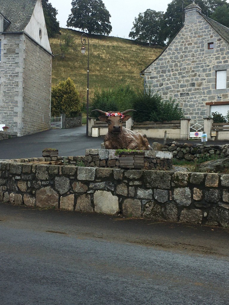 Nasbinals is really cool, old stone houses and tangled ivy covering everything, smashed stained-glass. And this awesome cow-wearing-flowers statue. Could a town even get better?
