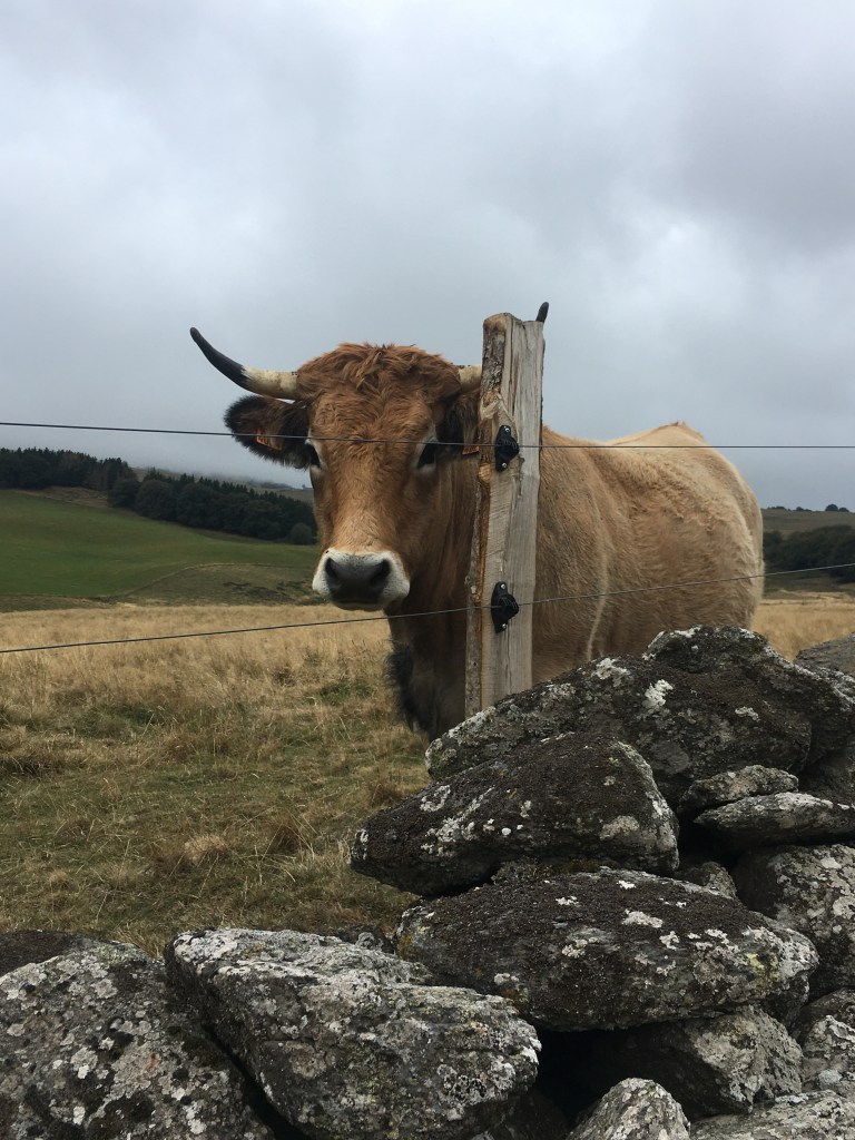 The cows are sandy brown, blending in, and occasionally you’ll startle one another as you pass. You might also hypothetically startle another pilgrim by being right behind them ready to overtake when they suddenly pause and turn around and go, “JESUS CHRIST!!”, and then when you apologise and start laughing, they might hypothetically go, in a really strong accent, “I am PRAYING now”. Hypothetically, that might send you chuckling downhill all the way into Rieutort d’Aubrac.
