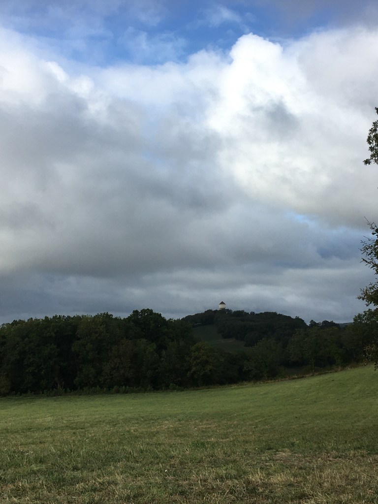 There’s a little water tower I can see over the trees ahead, marking the way to the next town. I’m clearing kilometres like they’re nothing, absolutely breezing by. I’ve never walked so fast in my life, and – oh this is Faycelles.