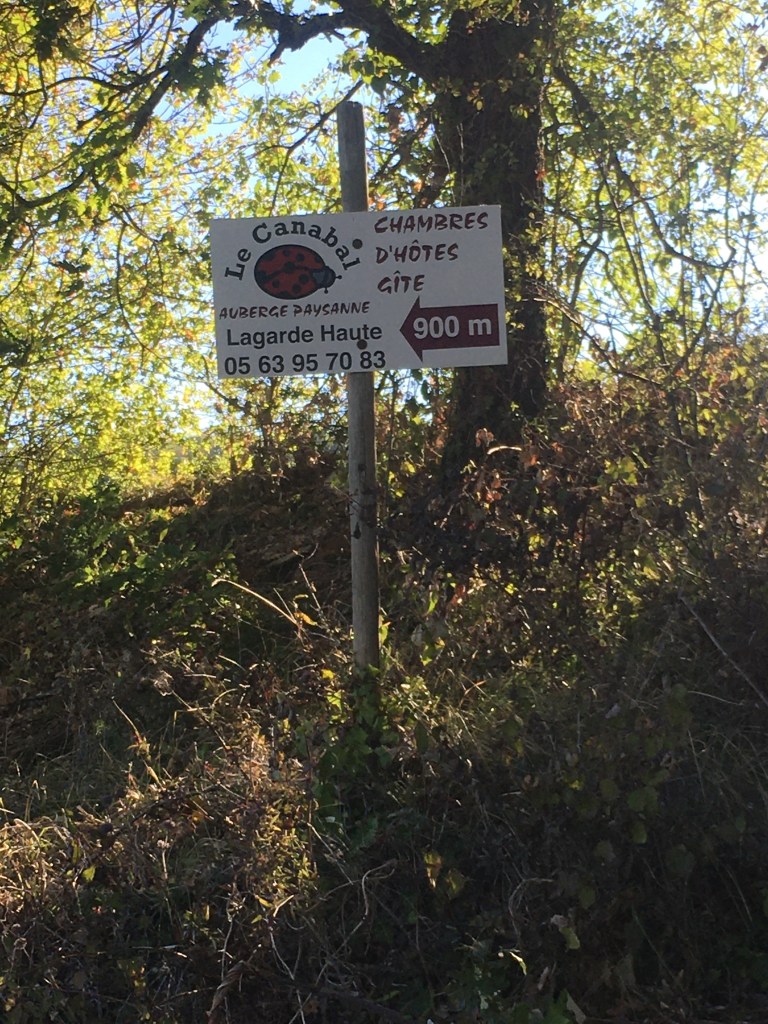 And yeah, they’re the wrong houses, and yeah, Montcuq is still an hour away, but that’s so besides the point! Because as you pass a little rest stop with donativo mint tea (that they have run out of – thankfully, else my zero day would be OVER I love mint tea <33), you’ll rejoin the hot, hot asphalt, and after a few minutes you’ll pass a sign you almost don’t read. But something in your stomach goes ‘mmm actually turn around for that one’, so you do and what do you know?